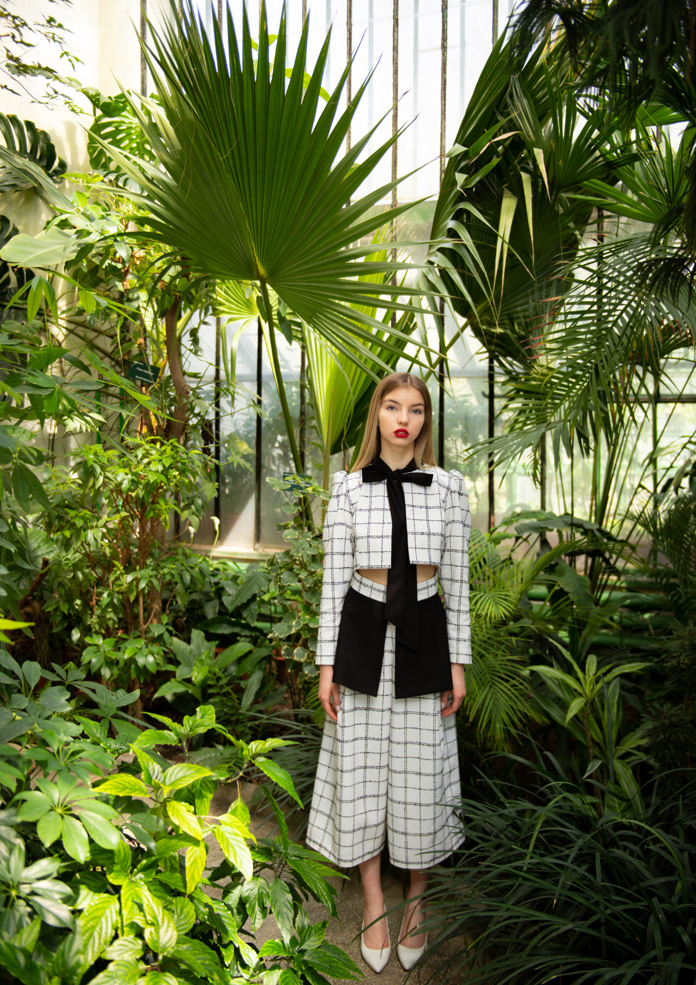 - Pantalon de tip cullotes, talie inalta cu peplum negru .