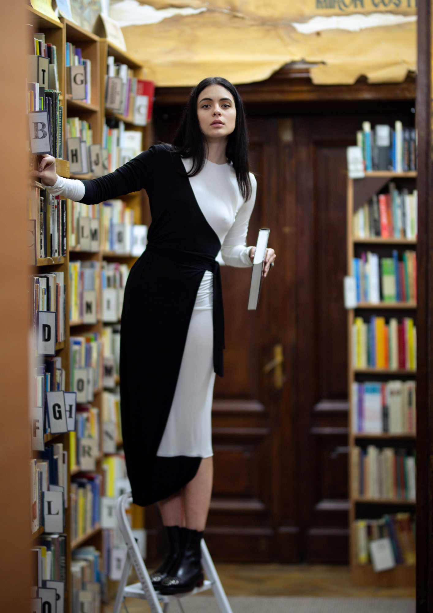 - Rochie in 2 tonuri atipica, alb si negru, minimalista.